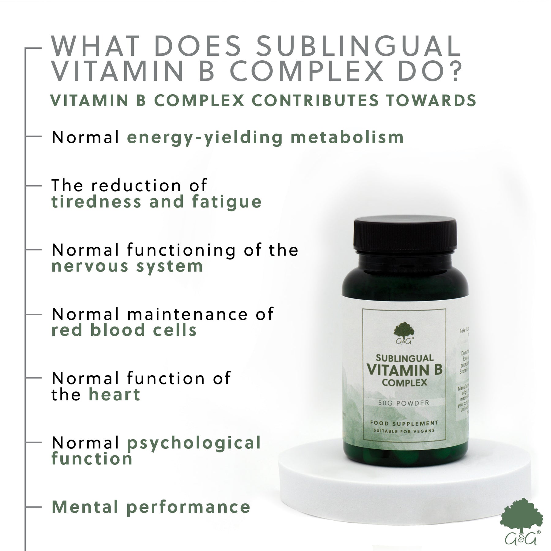 Ca o formulă sublinguală, vitaminele B sunt absorbite direct prin membranele mucoase de sub limbă, permițându-i să fie transferate direct în fluxul sanguin, mai degrabă decât să treacă mai întâi prin tractul digestiv.