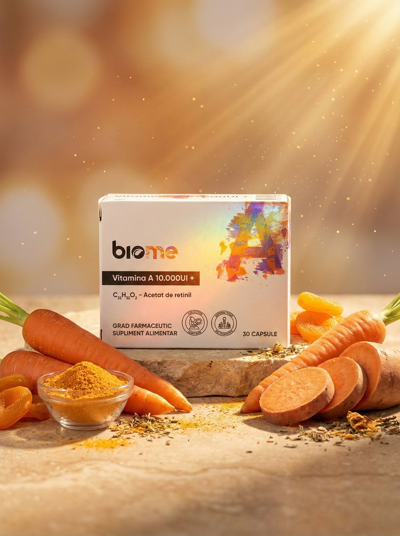 👁️ Vitamina A 10.000 UI+ într-o formulă precis dozată, simplă și ușor de integrat în rutina zilnică. Creată în România, cu loturi analizate independent.