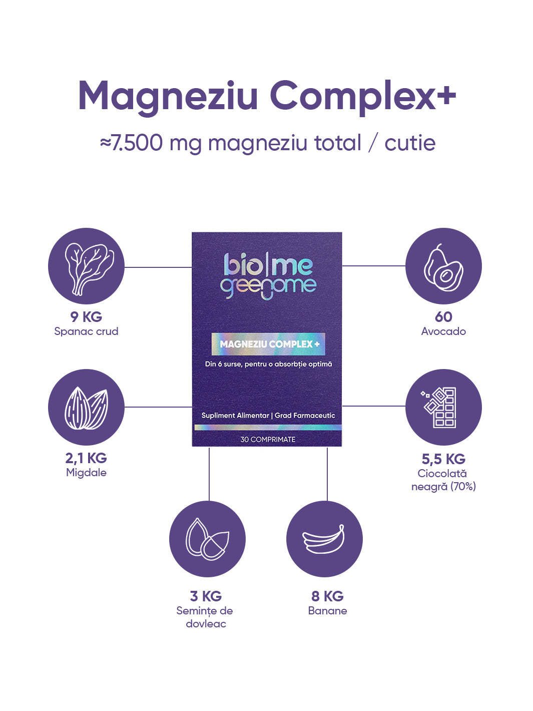 Magneziul este un mineral esențial implicat în peste 300 de reacții enzimatice din organism, având un rol-cheie în relaxare, echilibru neuromuscular și gestionarea stresului zilnic. Formula bio|me Magneziu Complex+ este concepută pentru a oferi suport complet, printr-o combinație inteligentă de șase forme diferite de magneziu: